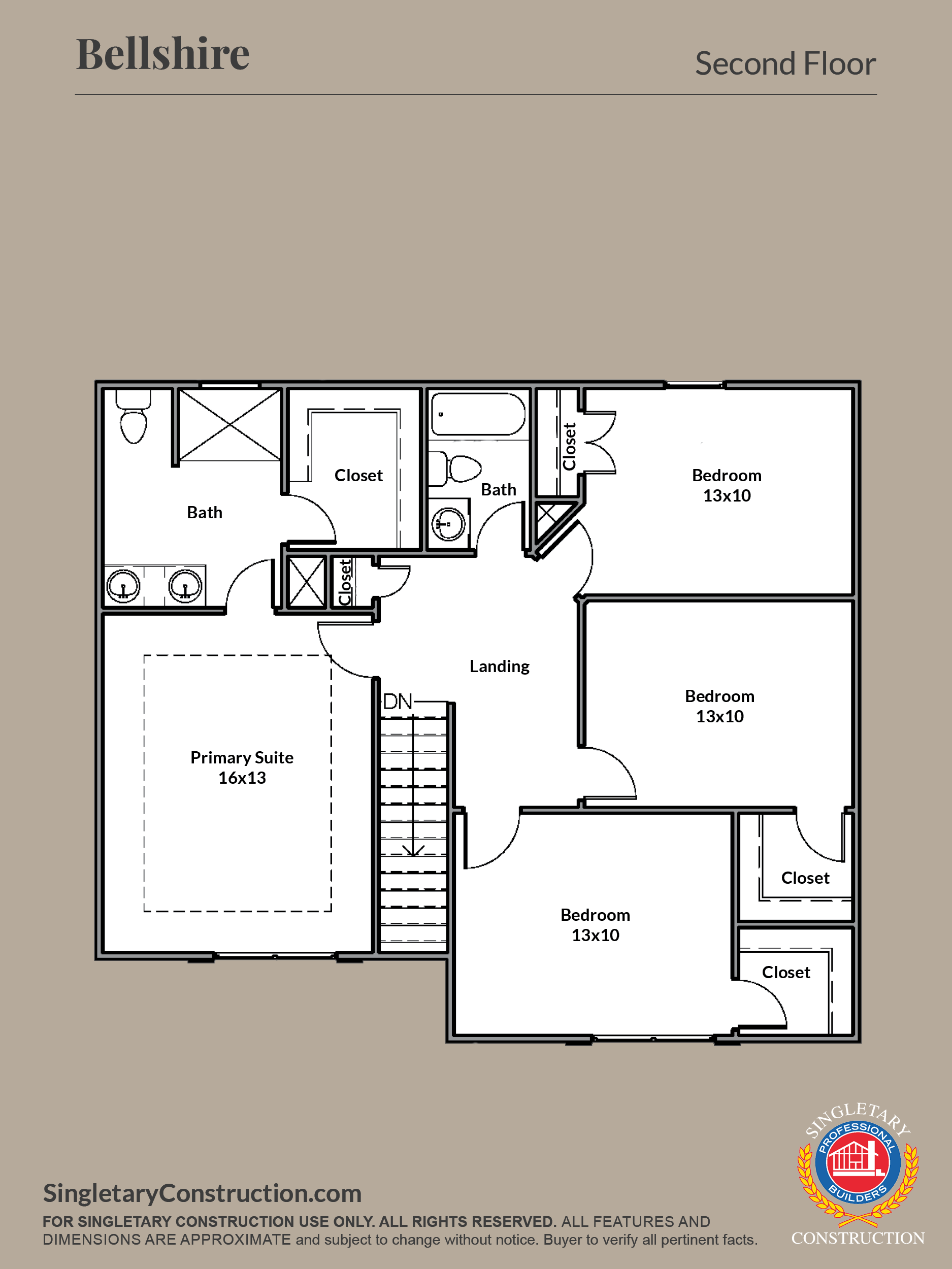 The Bellshire offers 4 bedrooms, 2.5 baths and 1810 square feet. This home offers an ideal layout for both relaxation and entertaining, featuring a versatile great room and dining area that open directly onto a charming covered patio. The main floor is anchored by a functional galley kitchen complete with pantry and features a spacious laundry room for added convenience. Upstairs, a wide landing leads to three large guest bedrooms and a stunning primary suite featuring a tray ceiling, dual vanities, and an expansive walk-in closet. Plenty of storage awaits!